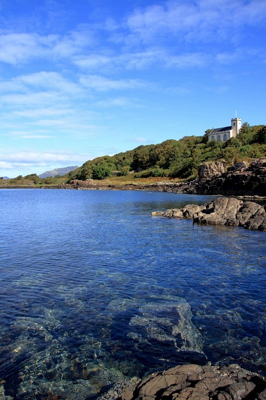 Arriving at the entrance to the beautiful Drimnin Estate glancing left at a bend in the Mungosdail River you will find the ruins of the Drimnin Water Mill. Further along the coast Drimnin St Columba’s Chapel stands proudly overlooking the Sound of Mull with stunning views towards Tobermory, Rubha nan Gall lighthouse and the Ardnamurchan Peninsulas. Stroll to the McLean Tomb, the abandoned clearance villages of Port a Bhata and Auliston, and you can visit our newest distillery. Taking inspiration from Neachneohain, an ancient Gaelic goddess, known as the Queen of Spirits and a fierce protector of nature, the Nc’nean Distillery is young, independent and organic, creating experimental spirits whilst pioneering sustainable production and is well worth a visit and a taste or two. Full details at Nc’nean.