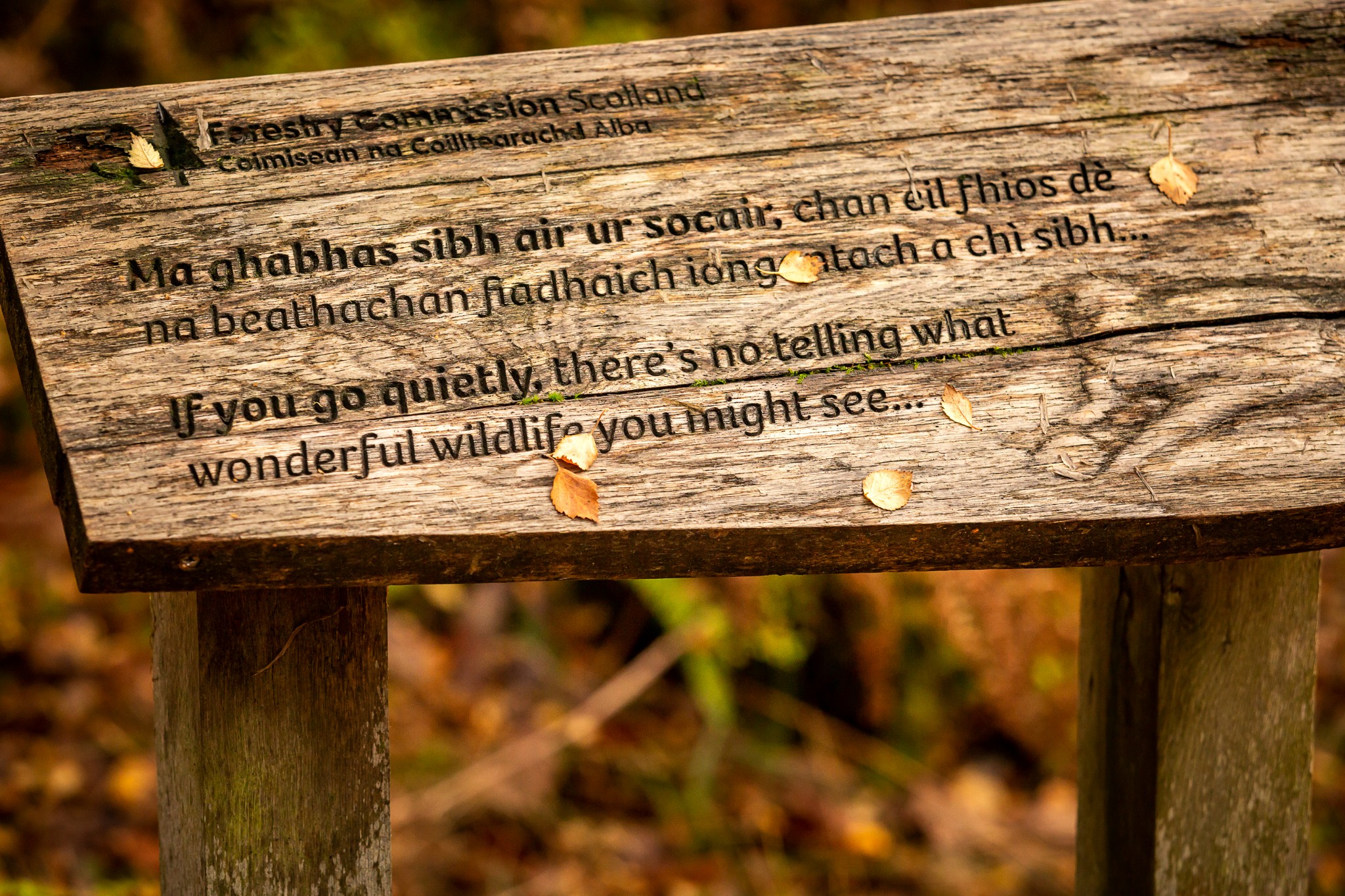 Gaelic was once widely spoken across the West Highland Peninsulas and nature, landscape, weather and wildlife had, and still has, great meaning to the people and their language, songs and verse. In the woods above the village of Salen, there is a short circular walk that, if you have a look at the signposts, uses the Gaelic alphabet to name the difference species of tree along the trail. You will also come across ‘Sgoil Na Coille’ (The Wood School), a structure built by local foresters and used for community events.