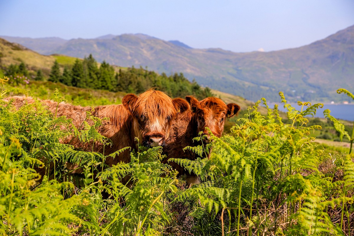 A key part of the project is to change the way that land on the island is managed by adopting selective, regenerative and managed grazing of grassland, meadows and woodland. These land types play a vital role in supporting biodiversity ranging from soil micro-organisms, amphibians, insects (including pollinators), bird life and mammals. However, when they are overgrazed, undergrazed or abandoned, they become less and less productive because soil and nutrients are depleted. On the other hand, with managed grazing, the soil structure, nutrient content and biodiversity all improve, and this results in land with a healthier environment, that locks in carbon and supports a much richer variety of flora and fauna. The tiniest insects, the eagles soaring overhead, the majestic red deer on the hills, the otters living along the shoreline and the seals and porpoises in our lochs all benefit as a result.