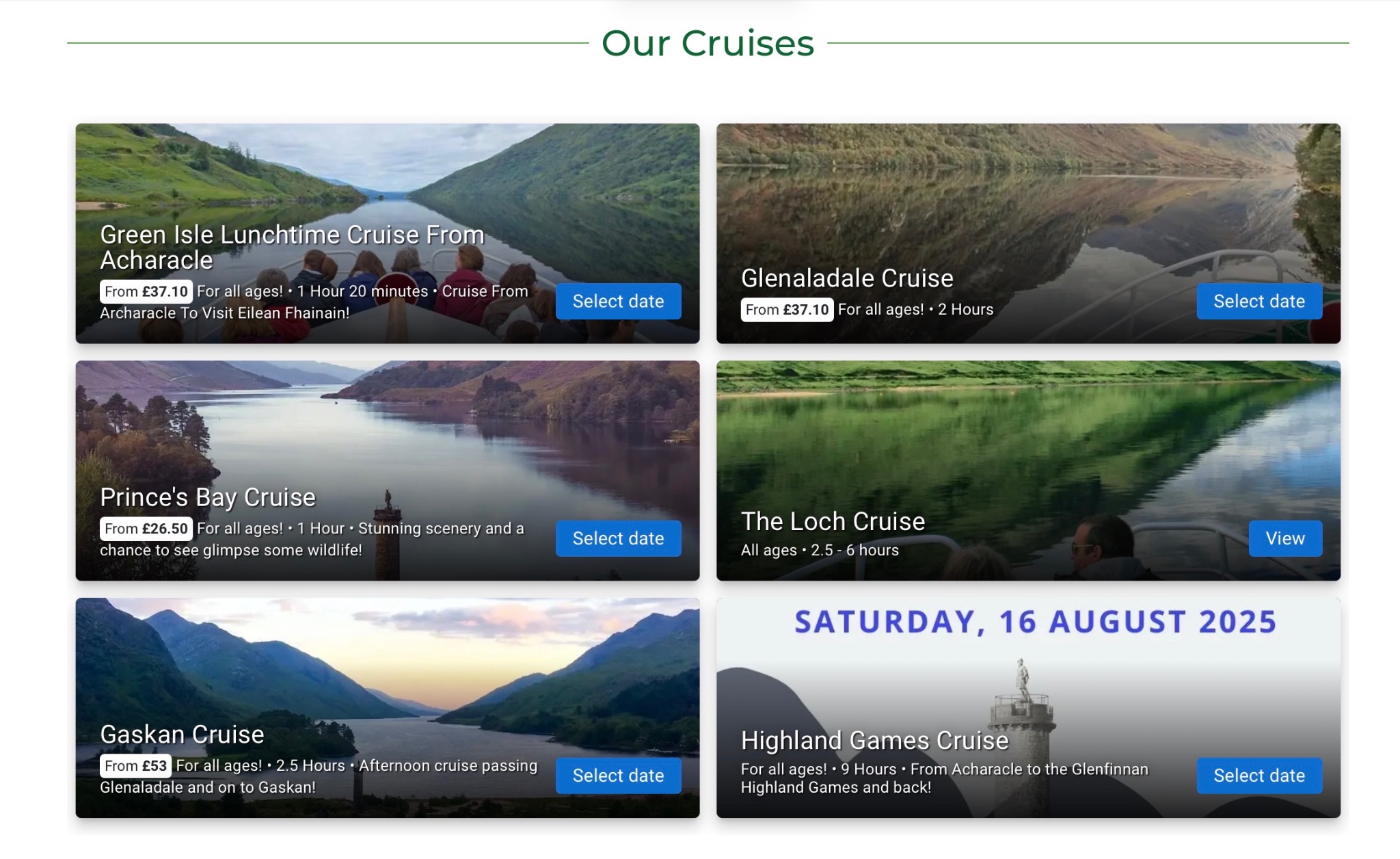 Loch Shiel Cruises offers a number of spectacular boat trips including: a round trip at lunchtime from Acharacle to the Green Isle with good chances of seeing sea eagles; a cruise along Loch Shiel overlooking the Glenfinnan viaduct and monument; and special events such as the Highland Games Cruise and wildlife photography tours.