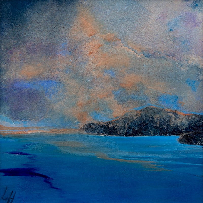 In addition to drawing upon deep memories of a sense of place, Lisa’s work is inspired by time spent exploring, observing and recording; from being fully immersed in the landscape that surrounds her, whether that be on foot or by boat. Walking the shoreline near to her home at the last low tide, seeing what treasures and changes the sea brings each day, fascinates her, and informs her work. Equally, time spent sailing around the west coast and beyond allows her to study the land from the sea.