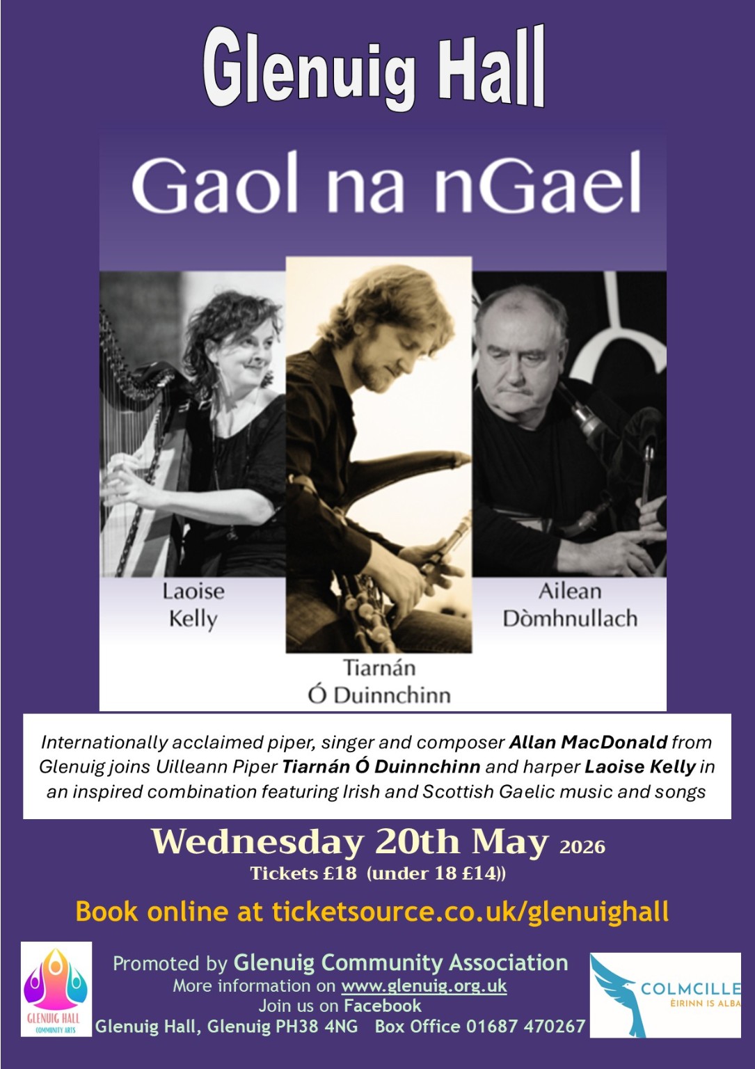 We are delighted that they have chosen Glenuig Hall as one of their Scottish showcase venues, bringing our own Allan Macdonald home to Glenuig in the process. Scottish and Irish Gaelic will be the primary languages used during performances and workshops, and there will be simultaneous translation to ensure accessibility.